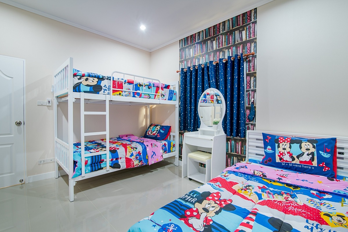 - ห้อง Pinkky เตียง 5 ฟุต + เตียง 2 ชั้น(3.5 ฟุต) / 4 ท่าน