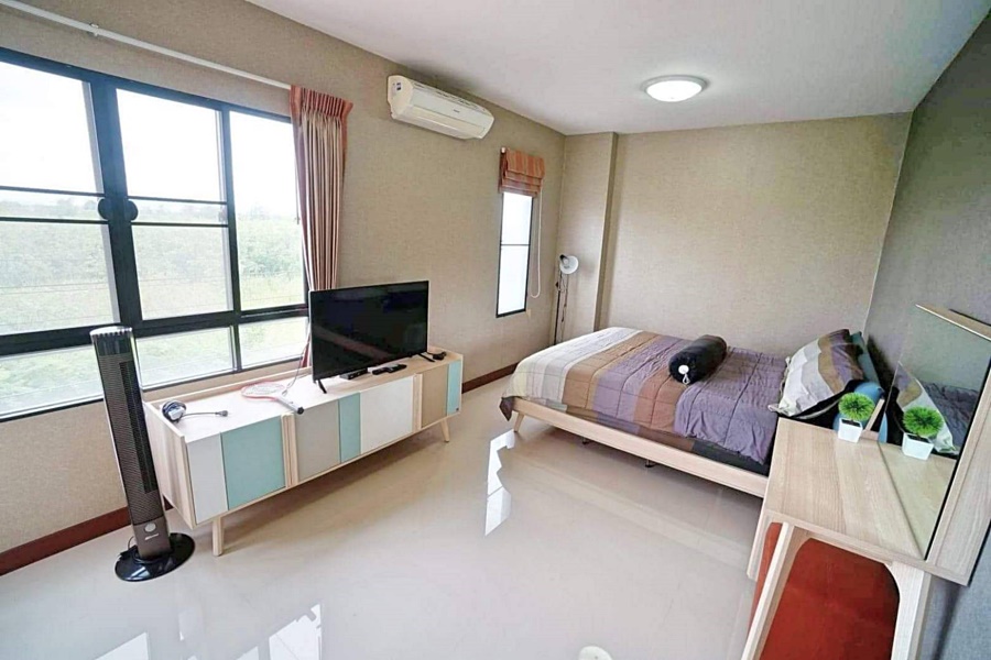 - บ้านพักมี 3 ห้องนอน 2 ห้องน้ำ มีเตียงนอน 6 ฟุต ห้องละ 1 เตียง เท่านั้น