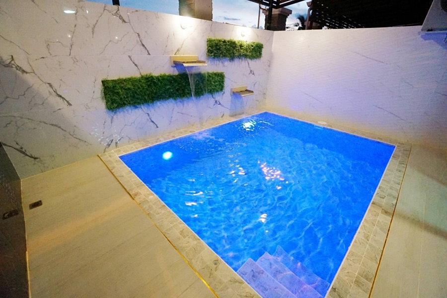 - สระว่ายน้ำส่วนตัวขนาด 4×3 x 1.2m ระบบเกลือ