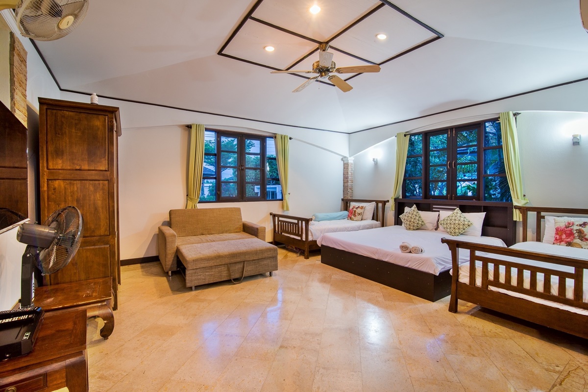 - บ้านพักมีเตียง 6 ฟุต 2 เตียง, 5 ฟุต 1 เตียง, 3.5 ฟุต 2 เตียง และโซฟาเบด 1 ตัว