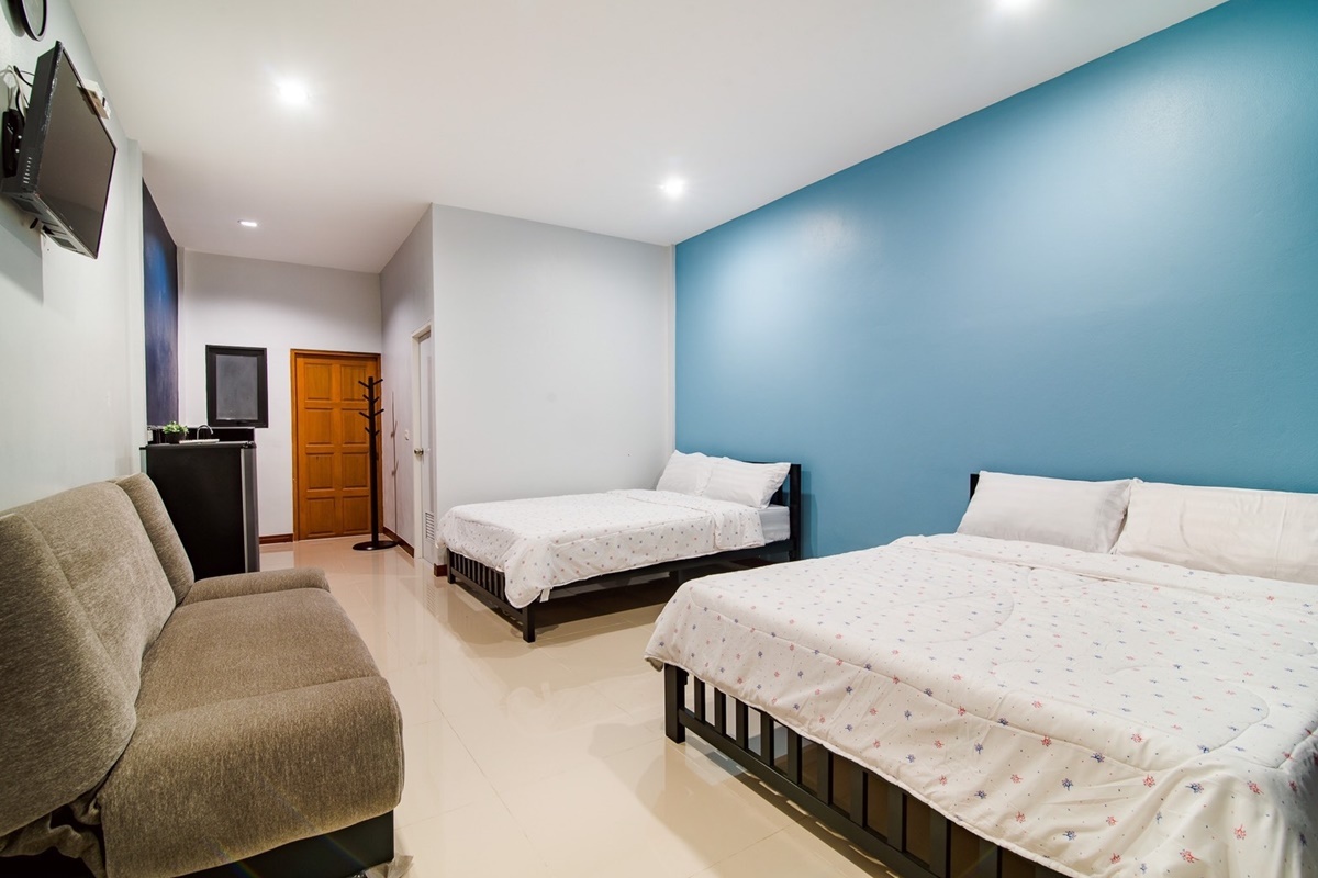-ห้องที่ 1 มีเตียง 5 ฟุต ห้องละ 2 เตียง (ห้องน้ำในตัว)