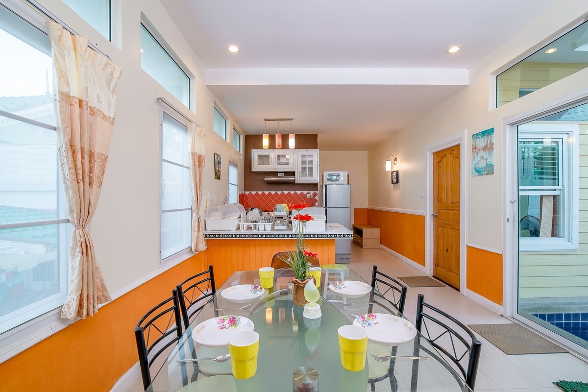- อุปกรณ์เครื่องครัวบริการฟรี หากลูกค้าต้องการให้ทำความสะอาด จาน ชาม เครื่องครัวให้ (มีค่าบริการ 500 บาท)