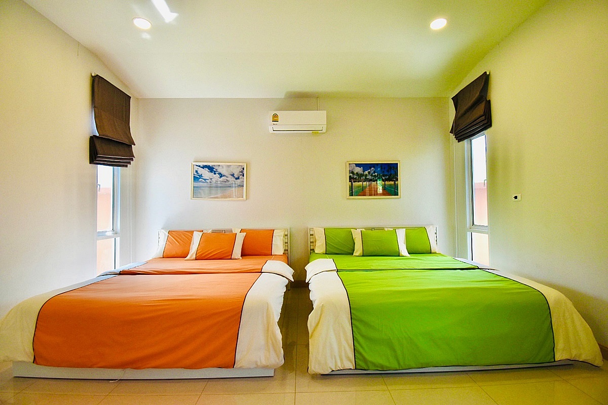 - บ้านพักมี 3 ห้องนอน 3 ห้องน้ำ มีเตียง 6 ฟุต 4 เตียง และที่นอนเสริม 3.5 ฟุต ห้องละ 1 ชุดเท่านั้น